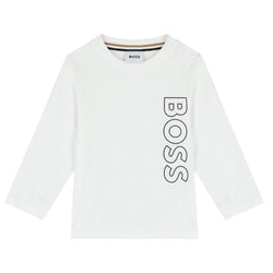 Playera Blanca de Manga Larga para Bebé BOSS con Logo Vertical