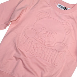 Sudadera para niña en color rosa suave con diseño de cuello redondo y manga larga. Destaca por su estampado en relieve tono sobre tono del icónico oso Toy Bear junto al logo MOSCHINO, que le aporta un estilo sutil y elegante. Confeccionada en algodón de tacto suave, con puños y cintura acanalados que brindan mayor comodidad y ajuste. Perfecta para looks casuales con un toque delicado y de moda italiana.