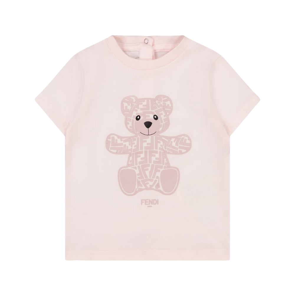 Fendi Playera Rosa Claro Niño Oso Monograma