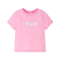 Fendi Playera Rosa Fucsia Niño Logo Plateado