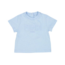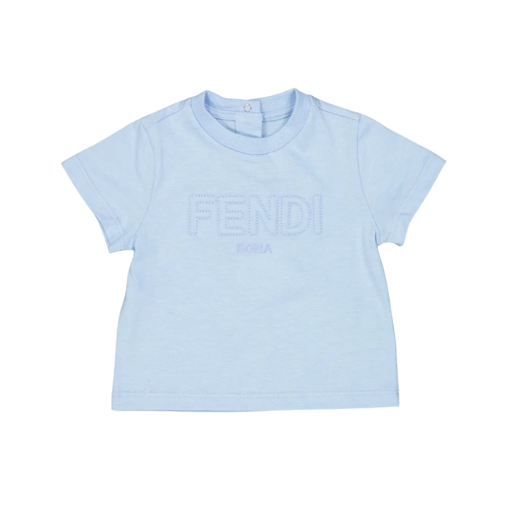 Playera en color azul claro de Fendi Roma, con el logo bordado en relieve en la parte frontal. Su acabado tonal genera un efecto elegante y sutil, ideal para quienes buscan un look minimalista pero con identidad de marca.
