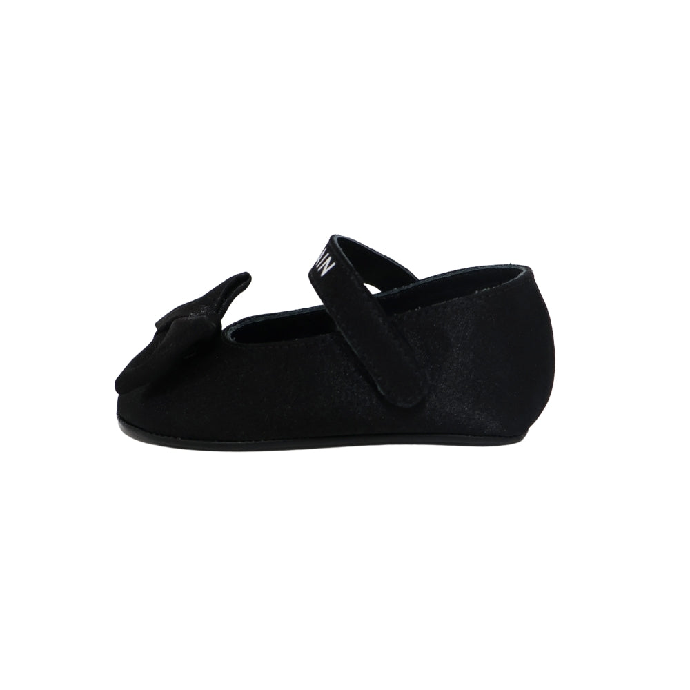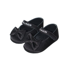 Bailarinas para bebé de Balmain en elegante color negro con moño al frente y tira ajustable con logo. Un diseño sofisticado ideal para ocasiones especiales, sesiones de fotos o primera puesta. Con interior suave y suela flexible que brinda comodidad sin sacrificar estilo.