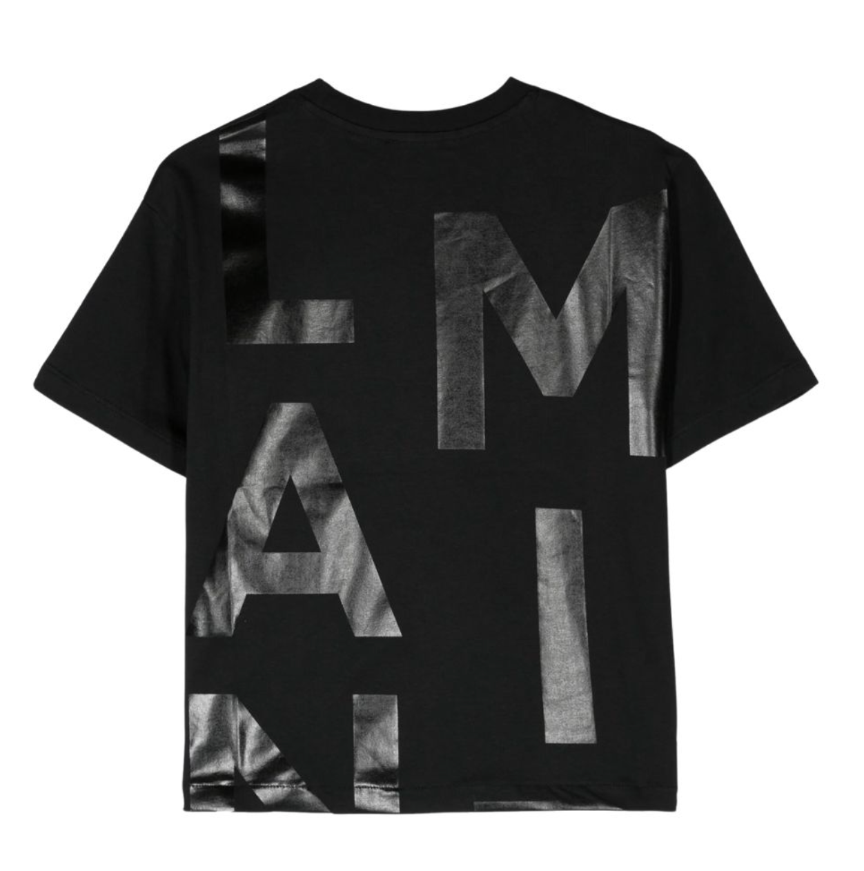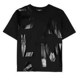 Camiseta negra de Balmain Paris con letras XL en acabado metálico en el frente. Un estilo llamativo y urbano con sello de lujo.