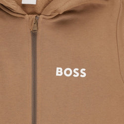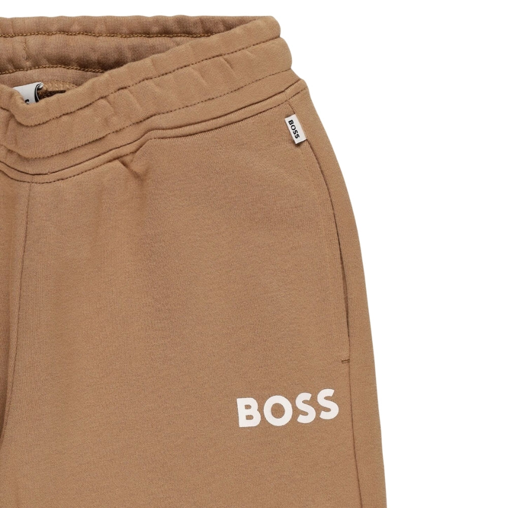 El conjunto deportivo de BOSS para niño combina estilo, comodidad y un toque sofisticado. Confeccionado en suave algodón de alta calidad, incluye una sudadera con capucha y cierre frontal, junto con un pantalón tipo jogger a juego. Su color camel es moderno y versátil, ideal para crear looks cómodos y elegantes. El logotipo BOSS en blanco aporta contraste y un acabado distintivo.