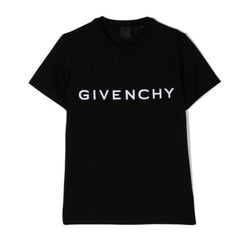 Camiseta negra de corte clásico con logo GIVENCHY en el frente y el icónico emblema cuadrado en la parte trasera. Moderna y distintiva.