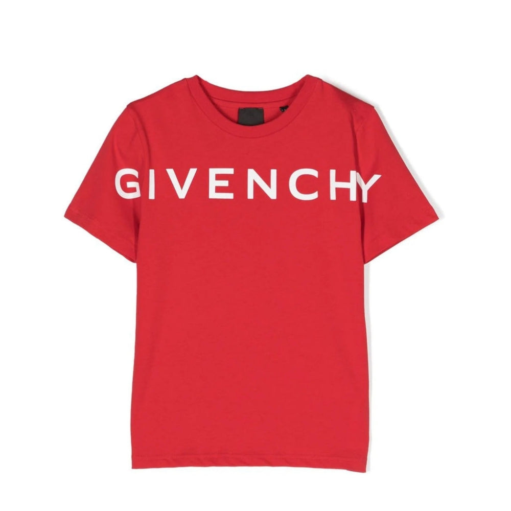 Playera de manga corta en color rojo con el logotipo Givenchy en blanco en la parte frontal. Estilo moderno y cómodo para uso diario.
