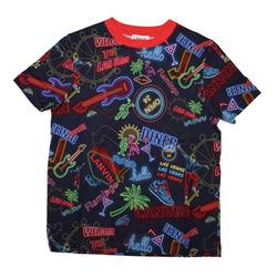 Playera de edición especial con estampado inspirado en Las Vegas, llena de gráficos coloridos de neón. Única y divertida.