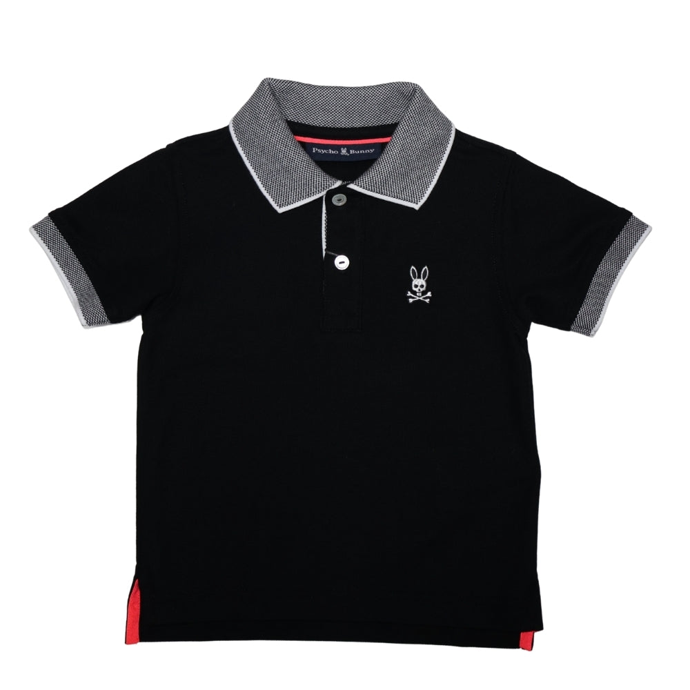Psycho Bunny polo negro con bordado blanco y detalles en cuello y mangas gris