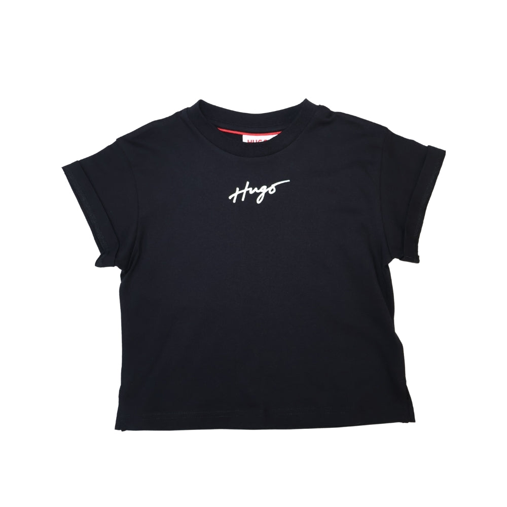 Esta blusa HUGO para niña en color negro combina estilo y comodidad en una sola prenda. Confeccionada en suave algodón, es ideal para el uso diario. Su diseño minimalista destaca con el logo “Hugo” estampado en blanco sobre el pecho, aportando un toque moderno y elegante. Perfecta para combinar con jeans, faldas o leggings y crear un look casual y con actitud.