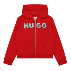 premium.Sudadera HUGO Boss en color rojo intenso, confeccionada en algodón premium para brindar comodidad y durabilidad. Cuenta con cierre frontal de cremallera, capucha ajustable y bolsillos tipo canguro. El logo HUGO en relieve 3D color gris con detalles negros añade un toque moderno y distintivo. Ideal para un look urbano con estilo y personalidad.